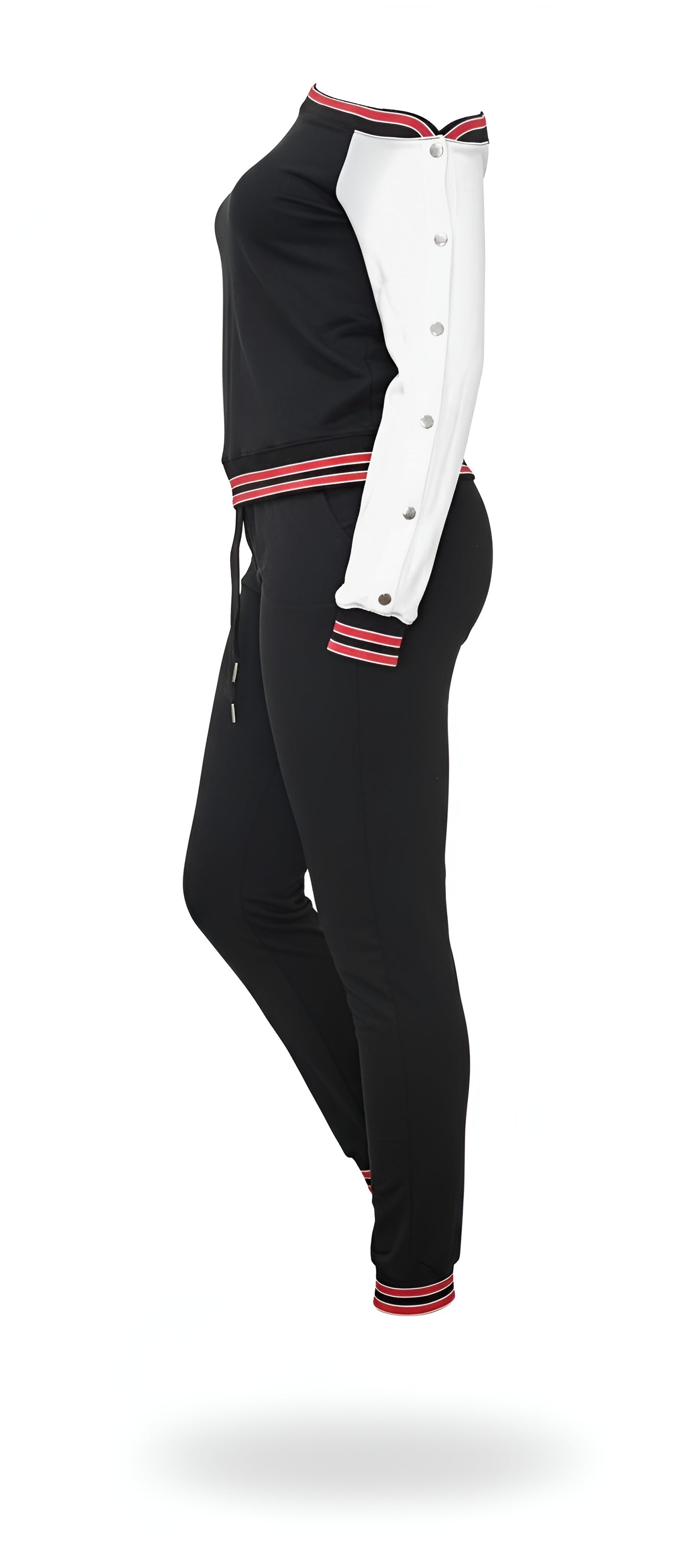 Our Off-Shoulder Varsity Jogger Set is the ultimate blend of style, comfort, and fit designed specifically for tall women. The soft, stretchy fabric moves with you for all-day comfort whether you're lounging at home or airport bound. Snap buttons down the dropped sleeve and a drawstring with sleek metal tips add a sporty, feminine edge that makes casual look effortlessly elevated.